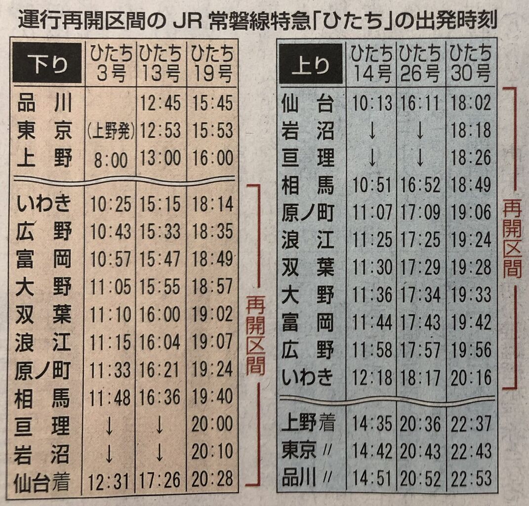 常磐線再開の特急「ひたち」の予定ダイヤが公表されました。
